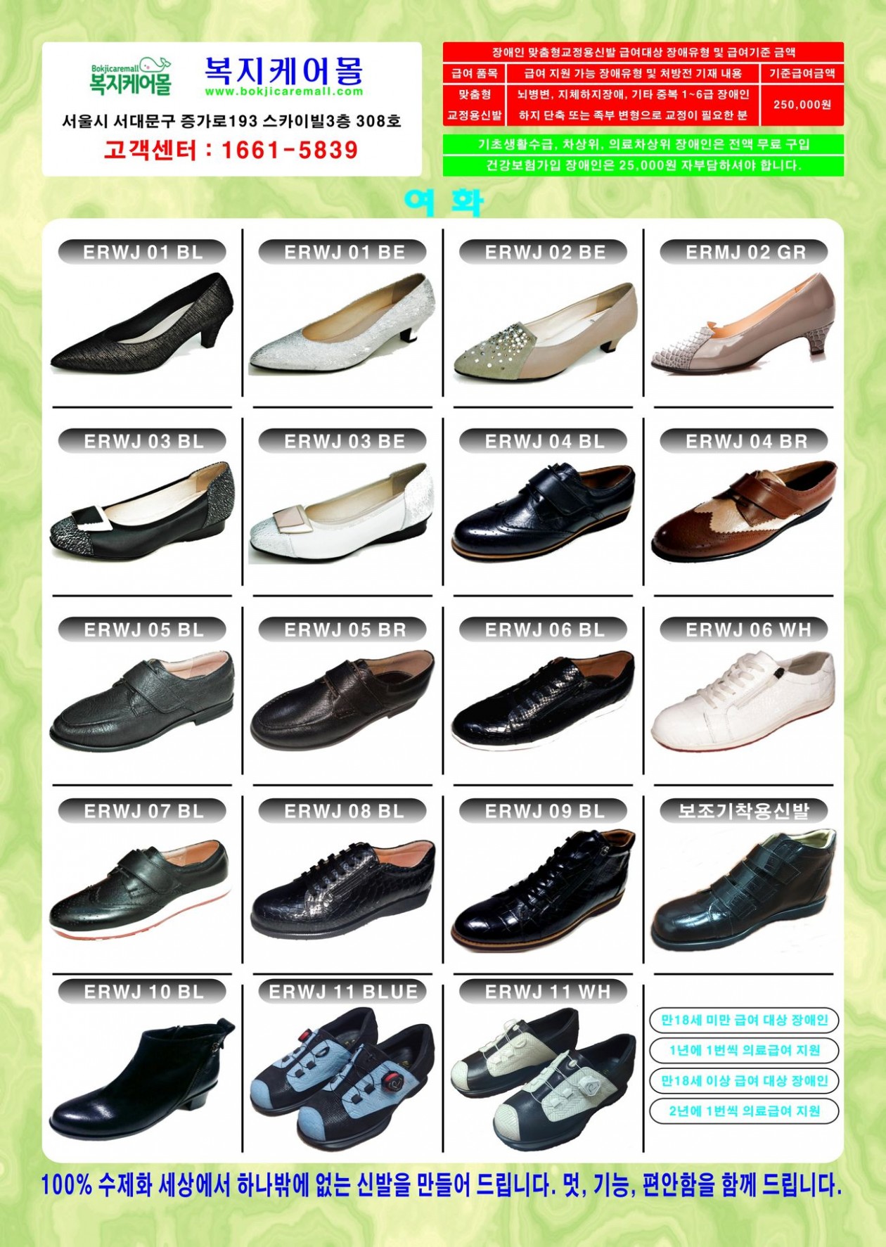 장애인 맞춤형교정용신발 정부의료급여 지원 받으세요! 복지케어몰 0 598 2019.04.21 16:09 2025.06.25 04:01 맞춤형교정용신발 광고.hwp.zip (10.6K) + 1 첨부파일을 참조하세요