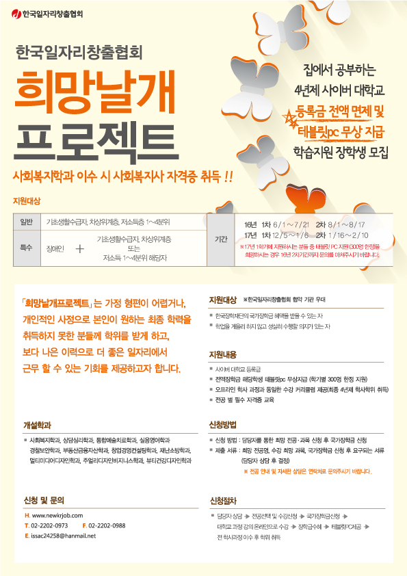 `희망날개 프로젝트' ★☆ 4년제 사이버대학교 전액 장학지원 ☆★