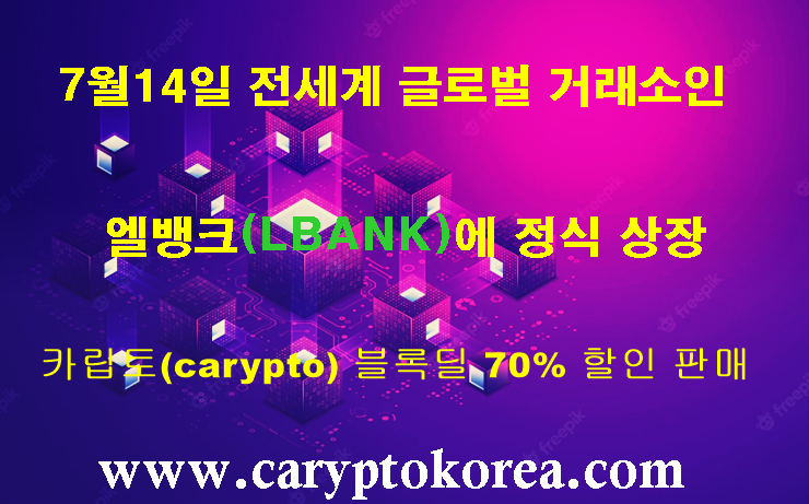 카립토가 7월 14일 전 세계적으로 유니크한 엘바크(LBANK)에 필패를 하고 있습니다.
