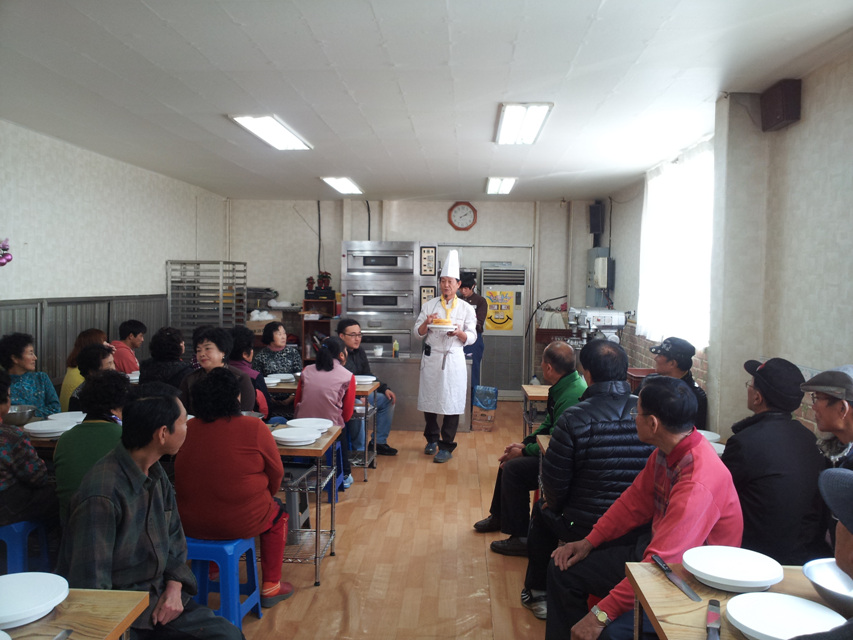 이날 회원 60명은 강준구 대표로 부터 제과 제빵에 쌀을 이용하는 방법 및 좋은점에 대해 설명을 듣고 직접 케익의 모양을 만들어 보았다.
