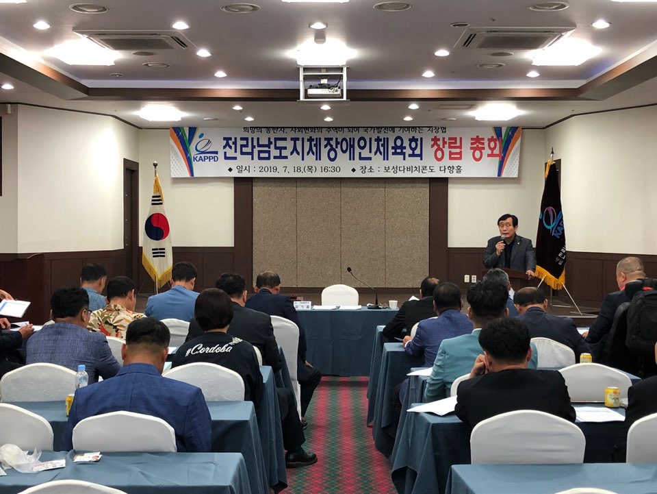 전라남도 지체장애인 체육회 창립 총회 최고관리자 0 481 2019.07.22 19:23 <p>2019년 7월 18일 보성다비치 콘도에서 전라남도 지체장애인체육회 창립을 위한 총회를 개최 하였습니다.</p><p>지체장애인만을 위한 체육회 결성을 위하여 전남지체장애인협회 임원 및 전남 22개 지회장이 모여 한목소리</p><p>로 지체장애인 체육회 창립을 촉구 했습니다.</p>