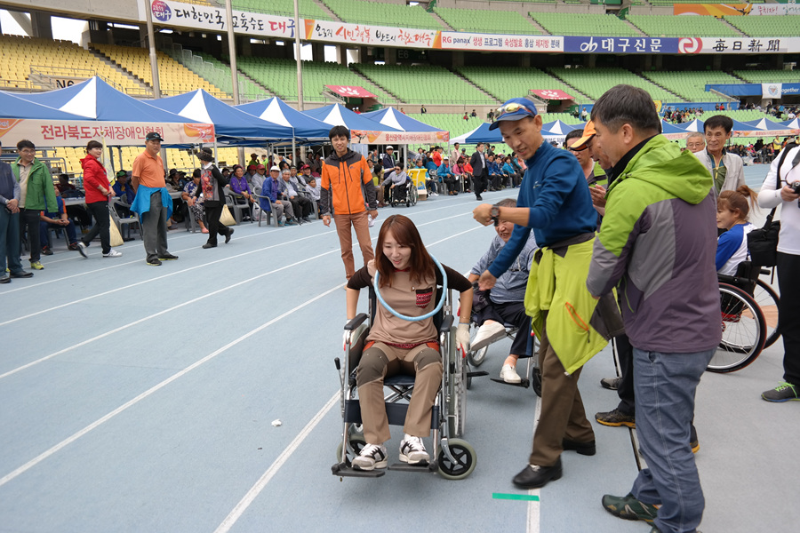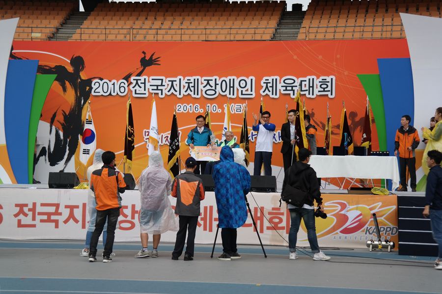 <div style="text-align: justify;">지난 10월 7일(금)에는 대구 스타디움에서 전국 지체장애인 체육대회가 성대하게 열렸습니다.</div><div style="text-align: justify;"><br></div><div style="text-align: justify;">뭉 치 자 ! 일 어 나 자! 나 가 자! 라는 슬로건 아래 각 협회기를 앞세우고 <span style="font-size: 9pt;">총 6개 종목( 줄다리기, 게이트</span></div><div style="text-align: justify;"><span style="font-size: 9pt;"><br></span></div><div style="text-align: justify;"><span style="font-size: 9pt;">볼, </span><span style="font-size: 9pt;">한궁, 좌식배구, 휠체어 계주, 스탠딩 계주)으로 </span><span style="font-size: 9pt;">선의의 경쟁을 펼쳤습니다.</span></div><div style="text-align: justify;"><br></div><div style="text-align: justify;">전남협회는 눈에 띄는 성과를 얻진 못했지만, 하나로 똘똘 뭉치는 모습을 보여주며, 모범상을 수상하기도 </div><div style="text-align: justify;"><br></div><div style="text-align: justify;">하였습니다.</div><div style="text-align: justify;"><br></div><div style="text-align: justify;">종합우승은 개최협회이기도 한 대구 협회에서 차지 했으며, 준우승은 작년 우승팀 충남 협회에서 차지 </div><div style="text-align: justify;"><br></div><div style="text-align: justify;">했습니다.</div><div style="text-align: justify;"><br></div>