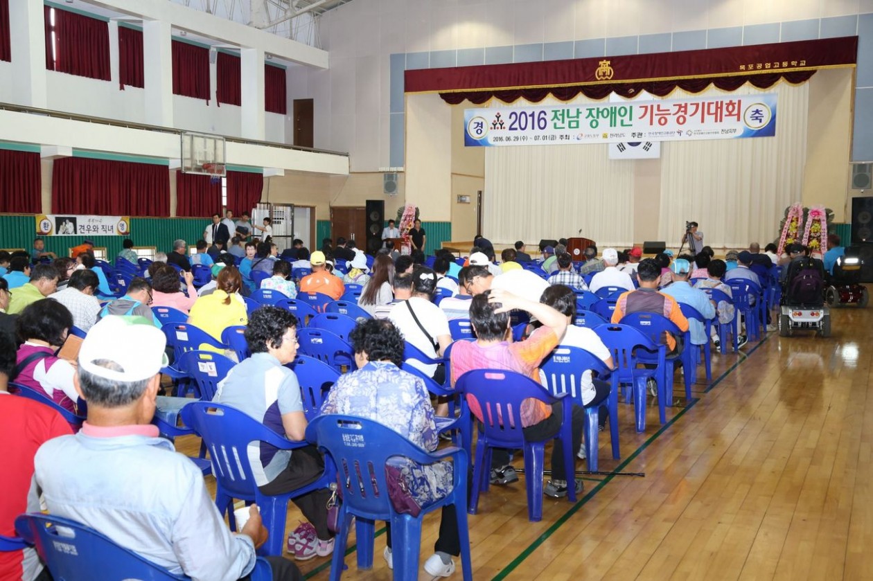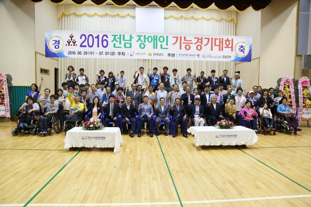 <p align="justify">2016년도 전남장애인 기능경기대회 개최</p><p align="justify">한국장애인 고용안정협회 전남지부에서는 2016년 6월 29일 부터 7월 1일까지 목포공업고등학교 외 4곳에 경기장에서 총 24개 종목 254명의 선수가 참가 하여 성황리에 대회를 마쳤습니다.</p><p align="justify">특히 6월 29일 개회식에서는 한국장애인고용안정협회 장재곤 전남지부장을 비롯하여 전남도청 보건복지국 신현숙 국장, 장만채 교육감, 박홍률 목포시장 장경희 한국장애인고용공단 전남지사장, 목포공업고등학교 장영호 교장선생님, 기타 각 단체장 및 도의원, 시의원님들이 참석하여 자리를 빛내 주셨으며, 6월 30일 경기 당일에는 목포 공업 고등학교, 남강직업전문학교, 목포과학대학교, 목포시장애인종합복지관, 전남 시각협회 에서 아름다운 경쟁을 펼쳣습니다.</p><p align="justify">그 결과 금상 20명, 은상 19명, 동상 17명, 총 56명의 참가자가 수상의 영예를 안았으며, 그중 금상 20명은 전국장애인 기능경기대회 참가의 기회를 얻었습니다.</p><p align="justify">시상은 폐회식인 7월 1일 오전 11시에 목포공업고등학교 기건관에서 이루어졌으며, 이것으로 2박 3일간에 대회를 성황리에 마무리 하였습니다.</p><p align="justify">기타 사진은 알림 마당에 올려 놓았으니, 필요하신 분은 다운받아 사용하시기 바랍니다.</p><p><br></p>