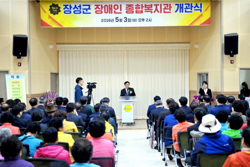 <p align="left">지난 5월 3일 14:00에 장성군 장애인복지관의 개관식이 있었습니다.</p><p align="left">이날 행사에는 김광환 한국지체장애인협회 중앙회장님을 비롯하여 유두석 장성군수님 및 전라남도, 장성군 관계 공무원,장애인 단체장등 많은 분들이 참석해서 개관을 축하해 주셨습니다.</p><p align="left">개관을 준비하신 이대원 관장님을 비롯한 직원분들께 감사의 말씀을 전하며, 상성군 장애읜 복지향상을 위하여 앞으로도 최선의 노력을 다해주실것을 믿어의심치 않습니다.</p><p align="left">전남협회도 항상 함께 하며 협조하겠습니다.</p>