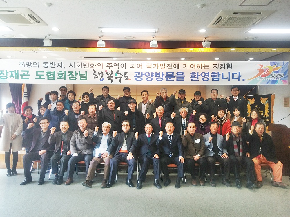 <P align=left>2016년 2월 23일 부터 3월 14일까지 계획 되어 있는 전남지체장애인협회 협회장 초도순시가 진행중입니다.<BR><BR>현재 23일 (광양,여수), 24일(장흥,보성), 25일(화순,나주), 26일(영광지회)를 다녀 왔습니다.<BR><BR>이번 초도 순시를 통해 각지회를 방문하고 각지회의 여건과 말못할 고충을 한눈에 볼수 있었고, 또한 평소에 <BR><BR>유선으로만 통화 하고 뵙지 못했던 지회의 모든 직원들을 만나 뵙게 되어 반가웠습니다.<BR><BR>앞으로 3월 2일 순천을 시작으로 2주간의 일정이 더 남았습니다.<BR><BR>남은 일정의 지회 임직원 여러분께서는 업무보고에 좀 더 심혈을 기울여 주시고, 건강한 모습으로 뵙기를 희망합니다.<BR><BR>그럼 수고 하십시요.<BR><BR>* 초도순시 사진자료는 알림마당 공지사항에 압축해서 올려 놓았으니 참고해 주시기 바랍니다.</P><!-- 테러 태그 방지용 -->