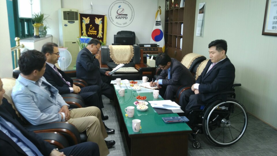 2015. 5. 27.(수) 17:00~ 한국장애인고용안정협회 조향현 중앙회장님께서 전남지부를 방문하였다. 6. 23.(화) ~ 6. 25.(목) 2박3일간 열리는 전라남도장애인기능경기대회 관련 지부 방문을 하였다. 이날 조향현 중앙회장님께서는 안전사고에 유념하도록 당부하였으며, 경기 당일 우천시 유의사항에 대해, 2016년 프랑스(보르도) 국제장애인기능올림픽대회 관련 선발전(전남지부 3명 신청)에 대한 당부의 말씀을 하였다. 또한 전남지체장애인협회의 전직원의 목소리를 듣는 시간을 갖고 협력하여 하나되는 한국장애인고용안정협회 전남지부가 되도록 말씀하였다.