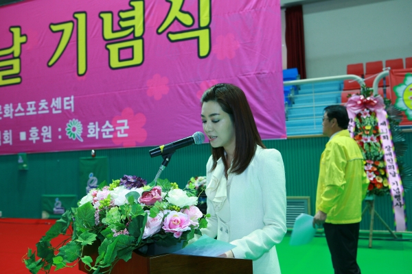 제31회 장애인의 날 기념식 진행을 맡은 KBS 정은나 아나운서의 사회 진행 모습.
